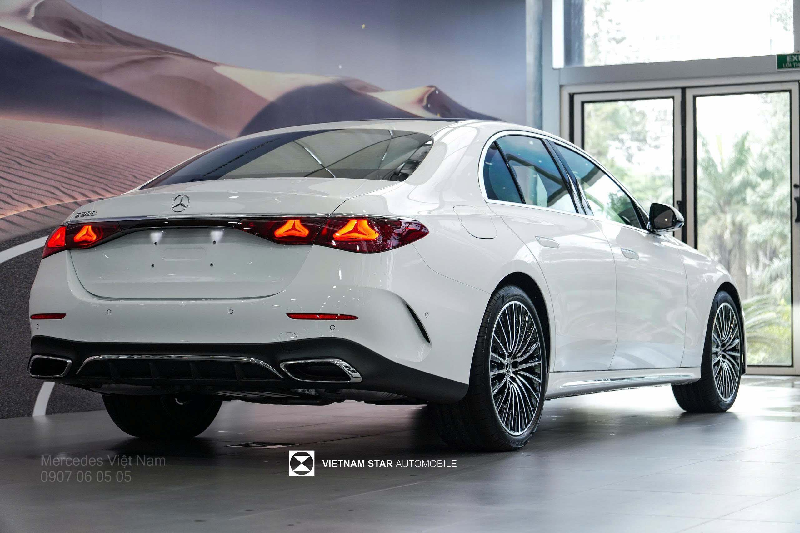 So với thế hệ trước, thân xe có thiết kế góc cạnh hơn, nhấn mạnh phong cách thể thao từ gói AMG Line, đồng thời giữ được sự tinh tế đặc trưng của E-Class, phù hợp cho cả công việc lẫn các chuyến đi chơi xa.