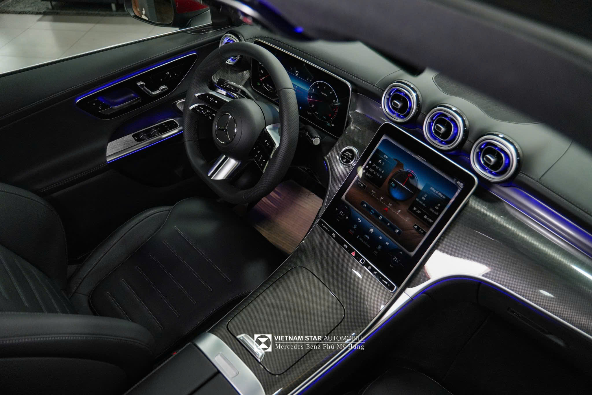 Màn hình trung tâm 11.9 inch đặt dọc, nghiêng 6-7 độ về phía người lái, giúp thao tác cực kỳ thuận tiện. Hệ thống MBUX tích hợp trí tuệ nhân tạo, hiểu lệnh bằng giọng nói tiếng Việt chuẩn xác qua câu lệnh “Hey Mercedes”.